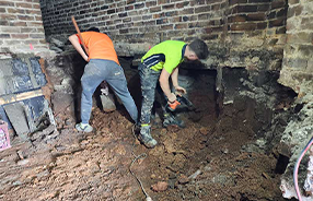 Definition courtesy Wiki: Shoring is the process of supporting a building, vessel, structure, or trench with shores (props) when in danger of collapse or during repairs or alterations. Shoring comes from shore a timber or metal prop. Shoring may be vertical, angled, or horizontal.